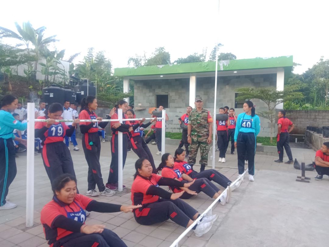 Guna menjaga kebugaran dan meningkatkan ketahanan tubuh, Babinsa Desa Landih Koramil 01/Bangli Kodim 1626/Bangli Pelda I Wayan Sujana melaksanakan pembinaan fisik dan olahraga bersama dengan siswa siswi LPK Bulan Palapa Bali yang bertempat di LPK Bulan Palapa Bali, Desa Landih, Kec/Kab. Bangli. Jumat (26/5/23).